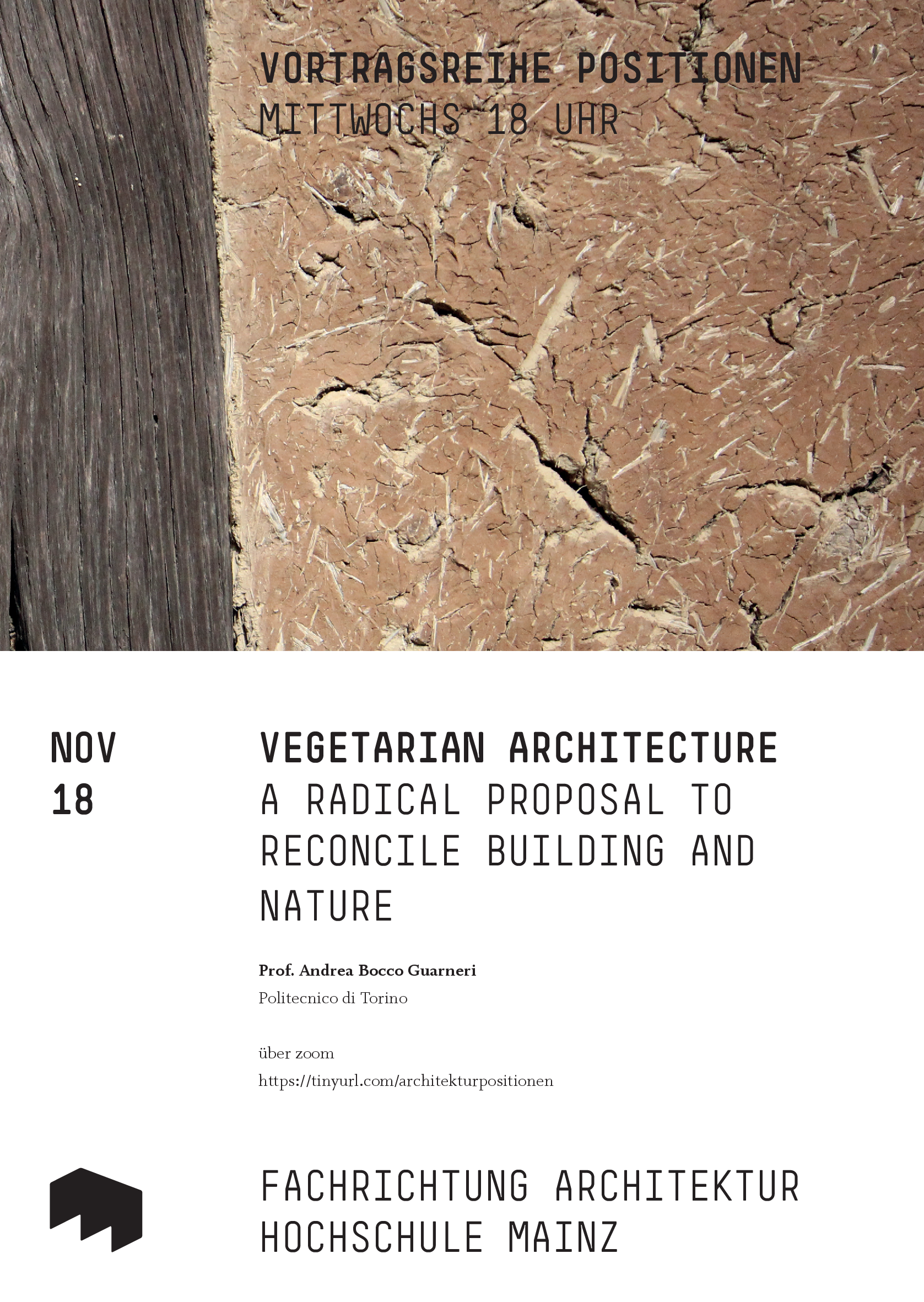 Prof. Andrea Bocco Guarneri (Politecnico di Torino) "What is “good” architecture? This seemingly simple question is connected to a wide range of criteria—just like the radical quest for “good” food, which has produced a wealth of insights over the past few decades. Vegetarian Architecture showcases buildings based on simple technology, good craftsmanship, and careful choice of local and natural materials, as well as local development initiatives which demonstrate excellence in building quality, landscape restoration, and community revitalisation. The selection of case studies is broad and definitely unconventional: it encompasses Europe and Japan, and privileges lesser-known authors, unobtrusive works, and marginal localities where radically fresh attitudes have been able to develop." Wann: Mittwoch, 18. November, 18 Uhr