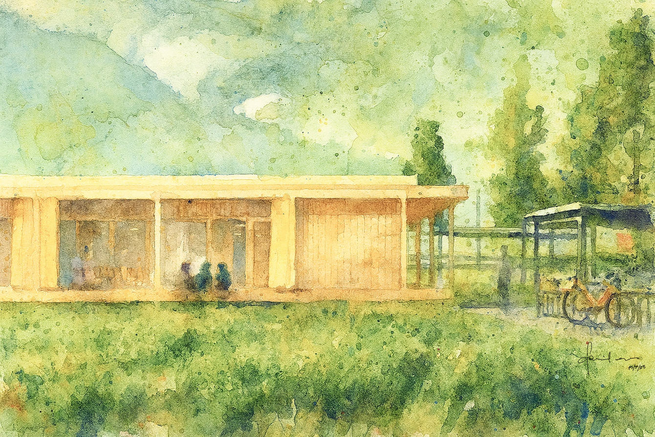 Durch die enge Verzahnung von Architektur, Innenarchitektur und Bauingenieurwesen wurde von Beginn an ganzheitlich geplant und gehandelt. Das Team vereinte konstruktives, ökologisches und gestalterisches Know-how – von der statischen Berechnung und der ökobilanziellen Bewertung nachwachsender Rohstoffe, die Auseinandersetzung mit kreislaufgerechten Materialflüssen bis zur Gestaltung flexibler, moderner Lern- und Arbeitswelten.