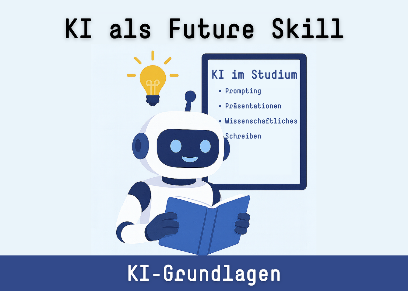 In unserer fünfteiligen Online-Kursreihe "KI als Future Skill" lernen Studierende Schritt für Schritt, wie sie generative KI-Tools kompetent und verantwortungsvoll in ihrem Studienalltag einsetzen können.
