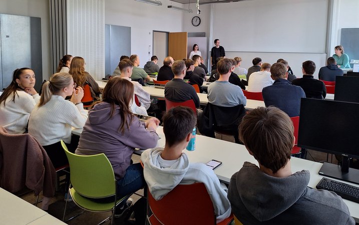 DANIEL PORATH, AGATHA KIRABO, ILLUMINATE ORIKIRIZA, AMBROSE AKAMPURIRA – Vier Studierende aus Uganda am Fachbereich Wirtschaft