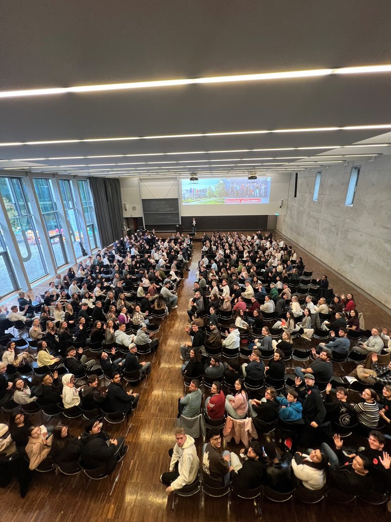 In einer voll besetzten Aula hat der Fachbereich Wirtschaft am 30. September seine neuen Studierenden im Wintersemester 2025/26 willkommen geheißen. Rund 700 Erstsemester haben in diesem Herbst ihr Bachelor- oder Masterstudium in Vollzeit aufgenommen – darunter auch Studierende der beiden neuen Bachelorstudiengänge International Business und Cyber Security Management, die in diesem Semester erstmals starten, sowie Incomings.