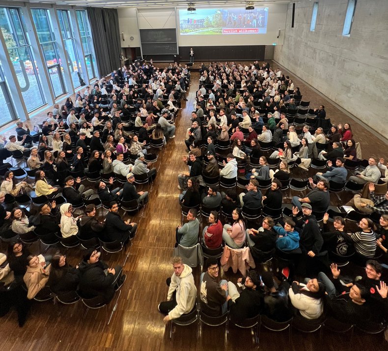 In einer voll besetzten Aula hat der Fachbereich Wirtschaft am 30. September  seine neuen Studierenden im Wintersemester 2025/26 willkommen geheißen. Rund 700 Erstsemester haben in diesem Herbst ihr Bachelor- oder Masterstudium in Vollzeit aufgenommen – darunter auch Studierende der beiden neuen Bachelorstudiengänge International Business und Cyber Security Management, die in diesem Semester erstmals starten, sowie Incomings.